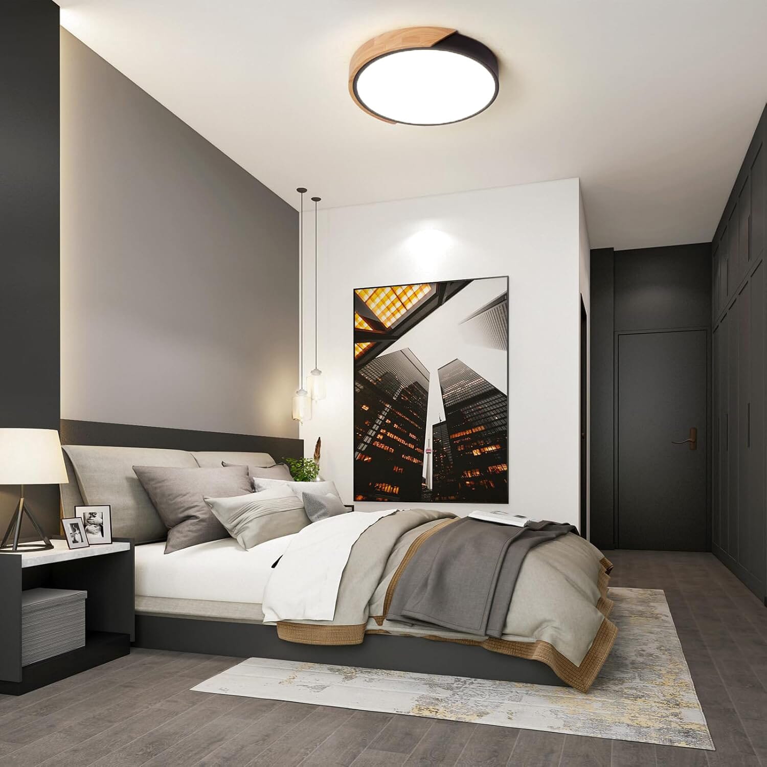 Plafón de techo de estilo nórdico, con diseño minimalista que combina aluminio pintado, madera y acrílico. Ideal para livings, dormitorios o pasillos que buscan una iluminación elegante y funcional. Disponible en tres tipos de luz: cálida, neutra y fría.